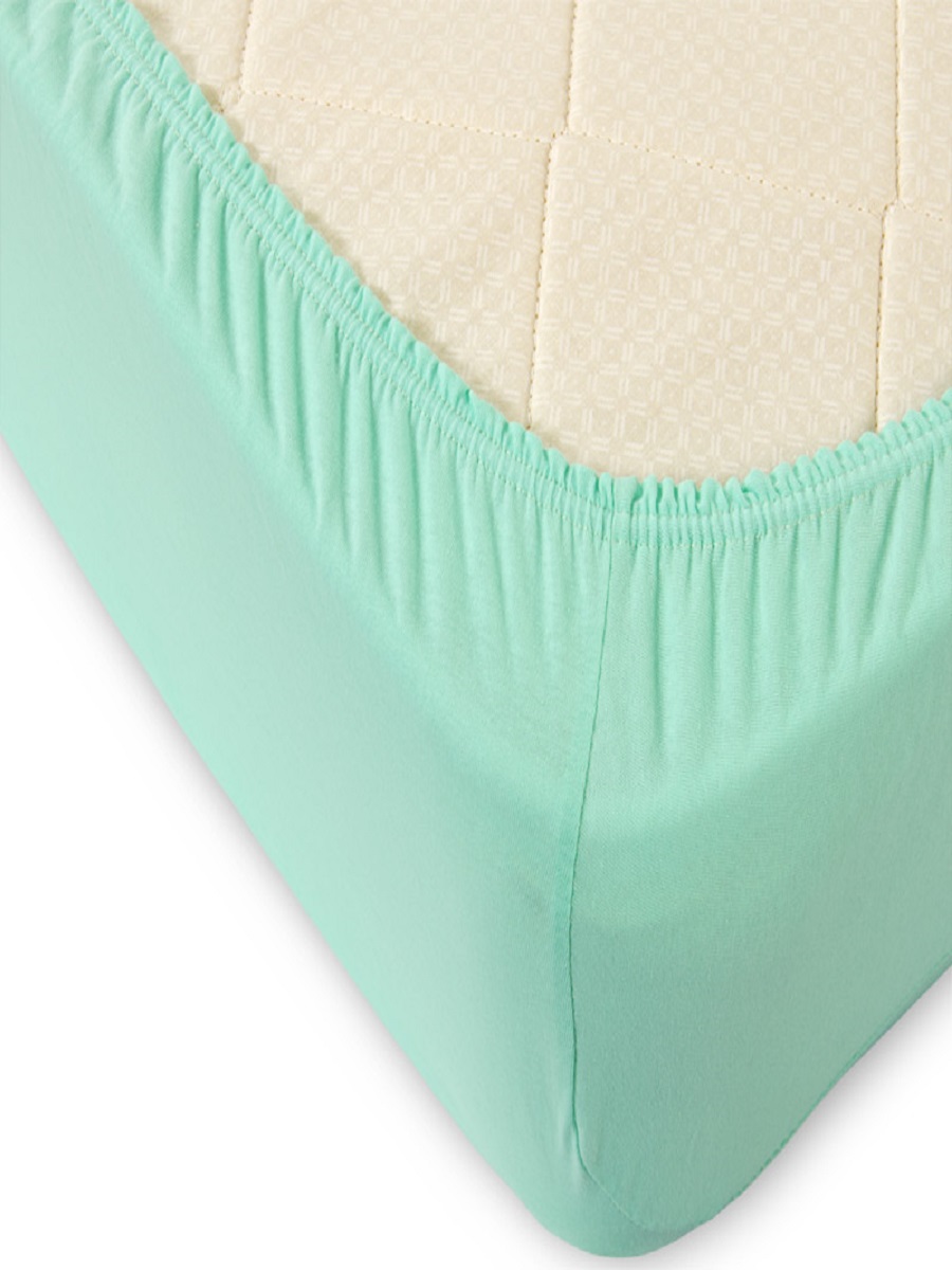 Простыня на резинке натяжная трикотажная однотонная. Простынь изготовлена из качественного трикотажного хлопкового полотна средней плотности 125 г/м2. Экологичная ткань - 100% хлопок, натуральная и гипоаллергенная. Постоянный контакт с кожей не вызывает раздражений и дискомфорта даже у детей. Обладает дышащим эффектом: летом будет прохладно, а зимой тепло. Трикотаж мягкий и очень приятный на ощупь. Благодаря прочной резинке, плотно облегает, не скатывается и не сминается во время сна. Прослужит долгое время даже после многочисленных стирок. Семейное постельное белье с натяжной простыней подойдет на кровати разных размеров. Имеет полноценный бортик 20 см и подходит для матрасов высотой до 15 см. Чтобы определить нужный размер простыни, следует измерить ширину и длину спального места по крайним точкам. Изделие прекрасно впишется в интерьер любой комнаты дома и дачи. На выбор представлено множество элегантных пастельных и ярких цветов. Рекомендуется стирать в стиральной машине при температуре до 40 С в режиме "д